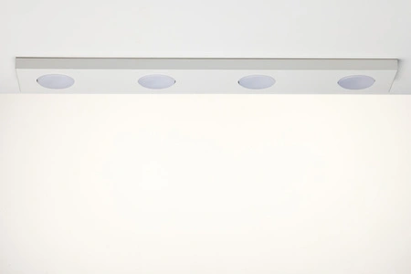 - Prostokątny plafon sufitowy w kolorze białym na 4 żarówki.