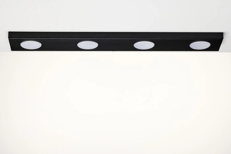 - Prostokątny plafon sufitowy w kolorze czarnym na 4 żarówki.