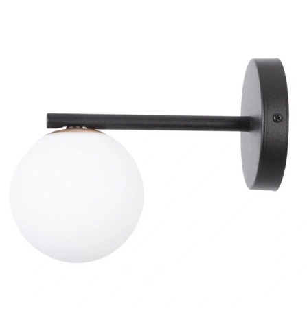 - Biało-czarny kinkiet z kulistym, szklanym kloszem.