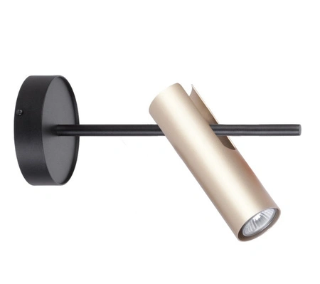 - Minimalistyczny, czarno-złoty spot z ruchomym kloszem. Lampa ścienna z jednym punktem świetlnym.