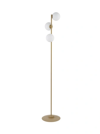 - Złoto-beżowa lampa stojąca o wysokości 160 cm. Lampa podłogowa z kulistymi, szklanymi kloszami.