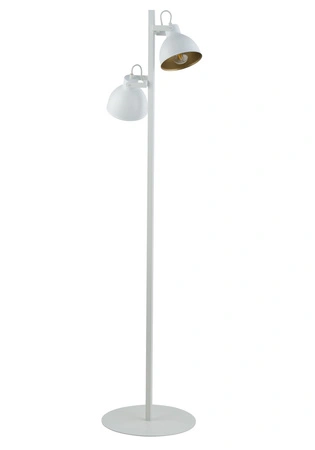 - Biało-złota lampa podłogowa w stylu loft z metalowymi kloszami.