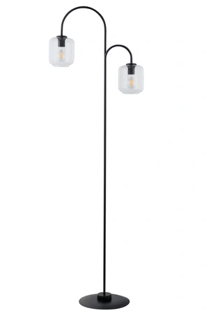 - Lampa stojąca ze szklanym kloszem w kolorze transparentnym.