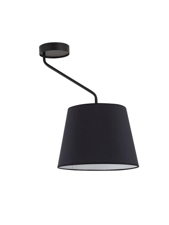- Nowoczesny plafon z czarnym abażurem. Korpus lampy wykonany jest ze stali lakierowanej, a klosz z materiału na folii PVC.
