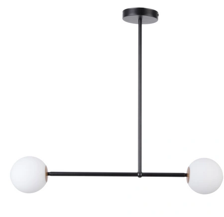 - Czarno-biała lampa sufitowa z kulistymi, szklanymi kloszami. Model z dwoma punktami świetlnymi.