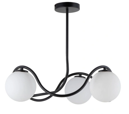 - Lampa sufitowa z kulistymi, białymi kloszami. Model z 3 punktami świetlnymi. Klosz o średnicy 14 cm.