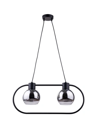 - Nowoczesna lampa wisząca ze szklanymi, srebrnymi kloszami. Model z 2 punktami świetlnymi. Wysokość lampy można regulować na przewodzie.