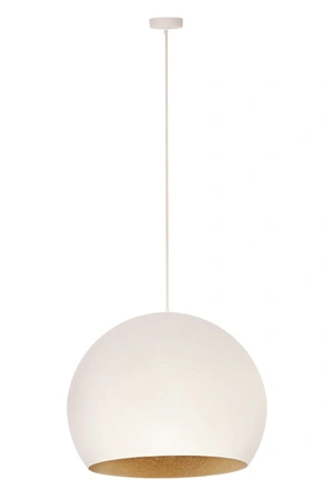 Designerska lampa wisząca MARGO w kształcie kuli dostępna jest w kilku wersjach kolorystycznych. Prezentowany model, to lampa w popularnym kolorze szarym. Jej wnętrze to niejednolita struktura w złotym kolorze, która po oświetleniu tworzy niepowtarzalny efekt wizualny. Kompozyt mineralny, z którego wykonana jest lampa sprawia, że pomimo okazałych rozmiarów jest ona lekka. Dodatkowo oprawa jest łatwa do utrzymania w czystości.