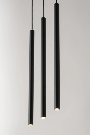- Czarna lampa wisząca z rurek z 3 punktami świetlnymi.