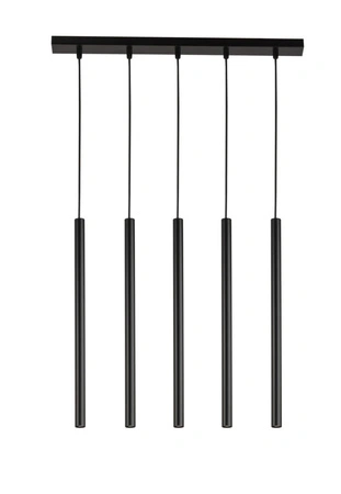 - Czarna lampa wisząca z rurek z 5 punktami świetlnymi.