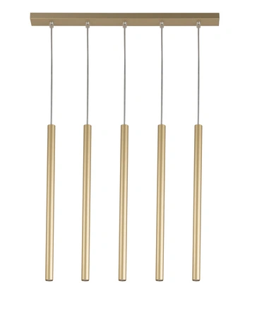 - Złota lampa wisząca z rurek z 5 punktami świetlnymi.