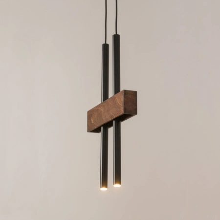 - Lampa wisząca sople z elementem sklejki imitującej drewno.