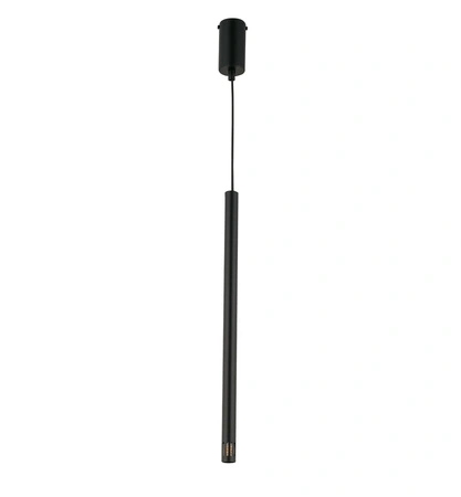 - Minimalistyczna lampa wisząca sopel. Czarna podłużna lampa rurka z jednym punktem świetlnym.