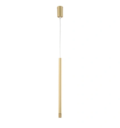- Minimalistyczna lampa wisząca sopel. Złota podłużna lampa rurka z jednym punktem świetlnym.