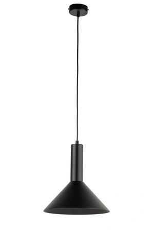 Pojedyncza lampa wisząca w kształcie stożka VITRUM to produkt wykonany z wysokiej jakości stali lakierowanej. Dostępna w klasycznym kolorze czarnym będzie idealnym, elementem dekoracyjnym każdego pomieszczenia i zapewni jego optymalne oświetlenie.