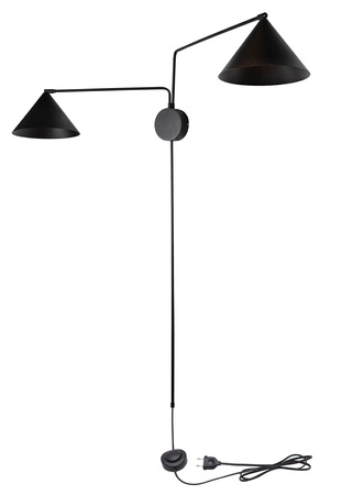 Metalowy, kinkiet podwójny MAGIC posiada ruchome, różnej długości ramiona, co pozwala na dowolne ustawienie kierunków padania światła. Zwiększa to funkcjonalność kinkietu. Na końcu tych ramion znajdują się klosze w kształcie stożków, które nadają kinkietowi stylowy wygląd. Klosze są również ruchomy, umożliwiając precyzyjne skierowanie światła tam, gdzie jest potrzebne. Lampa wyposażona jest w wyłącznik nożny, który umożliwia wygodne włączanie wyłączanie oświetlenia.