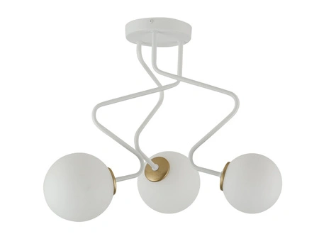 - Biało-złoty plafon ZIGZAG ze szklanymi kulistymi kloszami. Nowoczesna lampa sufitowa z 3 punktami świetlnymi.