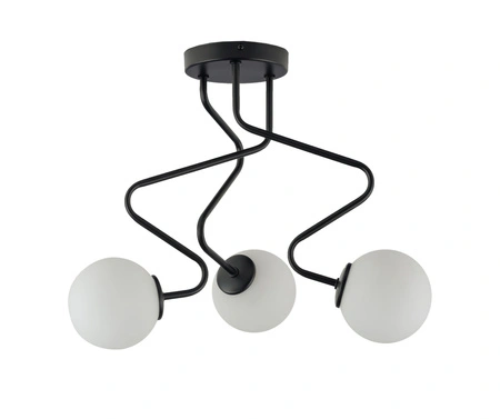 - Czarny plafon ZIGZAG ze szklanymi kulistymi kloszami. Nowoczesna lampa sufitowa z 3 punktami świetlnymi.