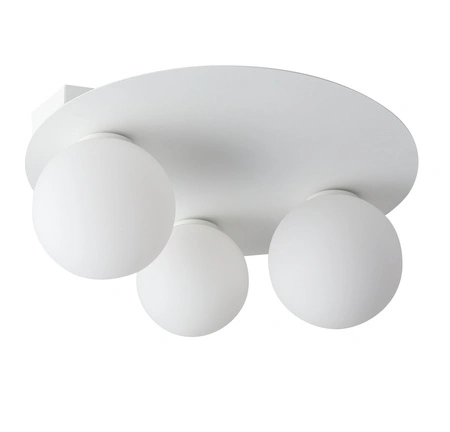 - Biały plafon ze szklanymi kulistymi kloszami. Lampę można montować jako kinkiet ścienny.
