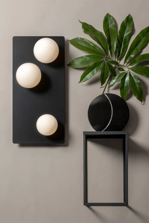 - Czarny plafon ze szklanymi kulistymi kloszami. Lampę można montować jako kinkiet ścienny.