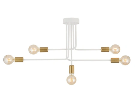 - Biało-złota lampa sufitowa w stylu loftowym z odkrytymi żarówkami.