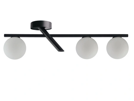 - Czarny plafon ZOE ze szklanymi kulistymi kloszami. Nowoczesna lampa sufitowa z 3 punktami świetlnymi.