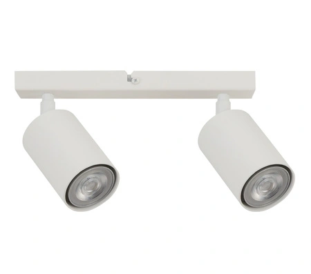 - Biała lampa sufitowa spot z dwoma punktami świetlnymi. Oświetlenie punktowe z ruchomymi kloszami.
