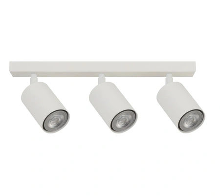 - Biała lampa sufitowa spot z trzema punktami świetlnymi. Oświetlenie punktowe z ruchomymi kloszami.