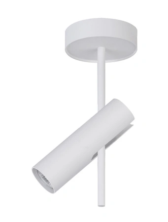 - Minimalistyczny, biały spot z ruchomym kloszem. Lampa sufitowa z jednym punktem świetlnym.